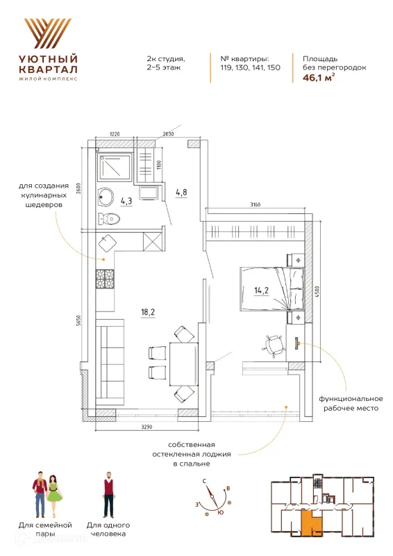 2 комн. квартира в Кемерово в ипотеку от 46 574 руб/месяц